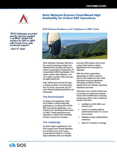 As Astro Malaysia moved its mission critical SAP and Oracle workloads to AWS, the company needed a certified high availability solution that could prevent downtime and ensure resilience for its Oracle Linux environment.